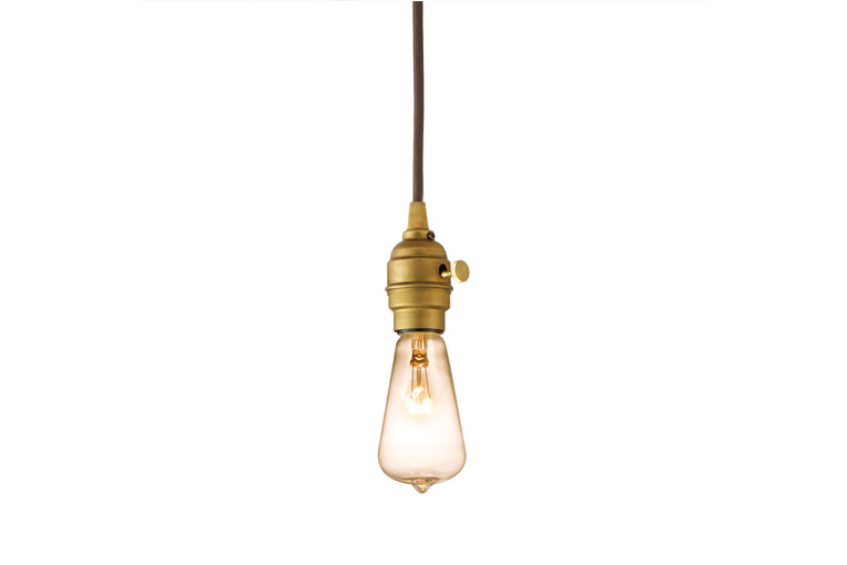 真鍮のソケットと電球。ただそれだけで、存在感のある照明です。