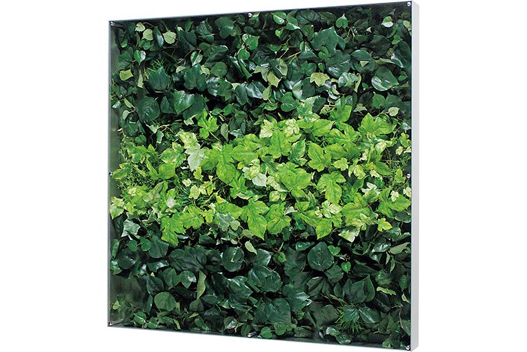 癒しのグリーンをBOXフレームに敷き詰め、透明板のカバーを付けました。