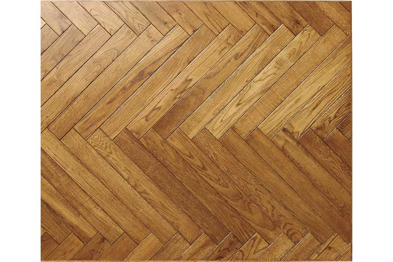 フローリング材をヘリンボーン貼りしたシンプルな天板。