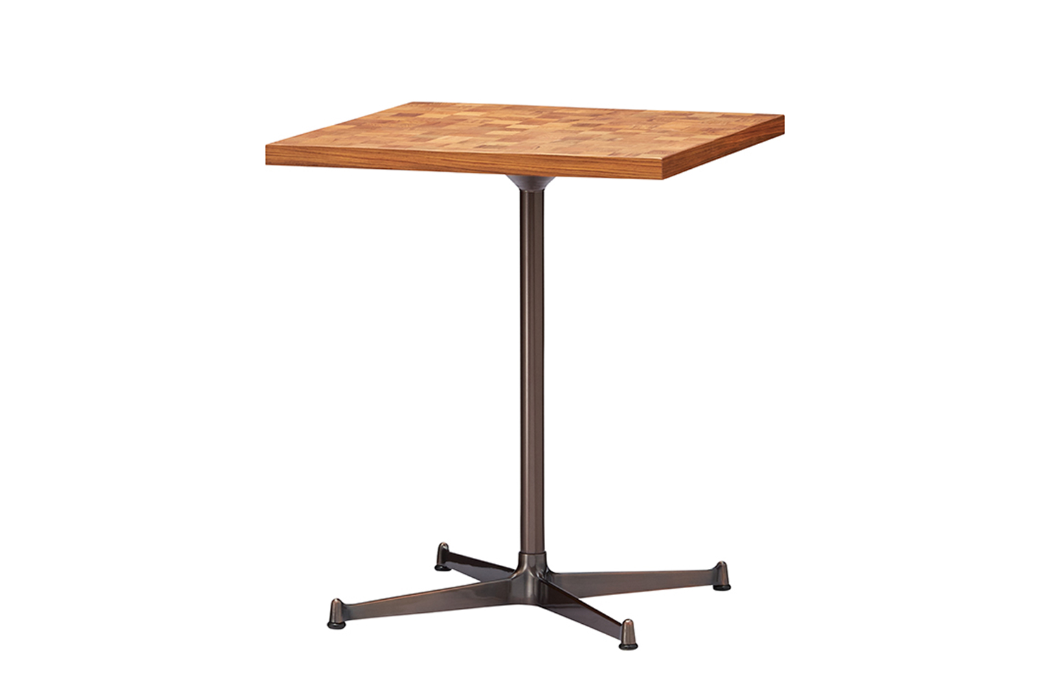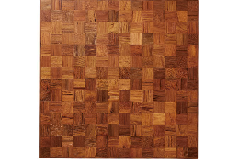 トップには細かいチーク材を集成し、モザイク状にデザインされたフローリング材を使用。チークの深みが強調され、他にはない表情になっています。