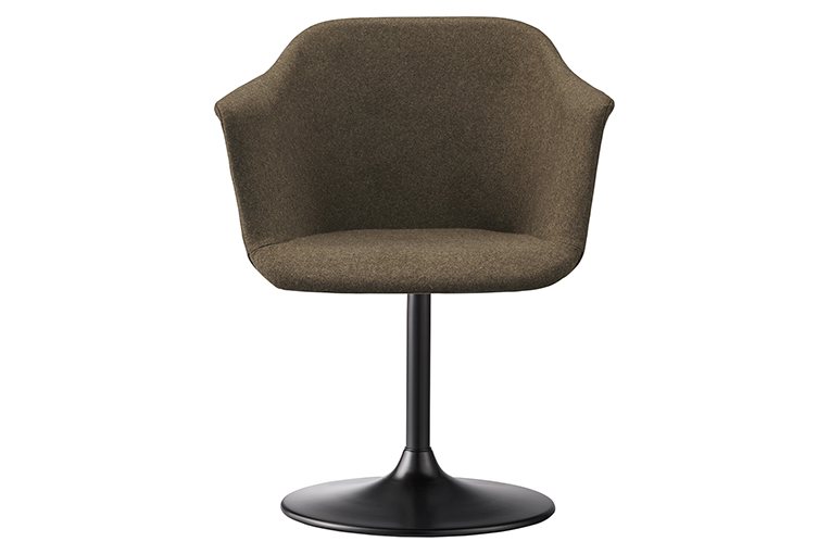 背から肘にかけて流れるようなフォルムが特徴的なアームチェアは、モールドウレタンフォームのシェルで優しいフィット感。同シリーズの脚は4タイプからお選びいただけます。