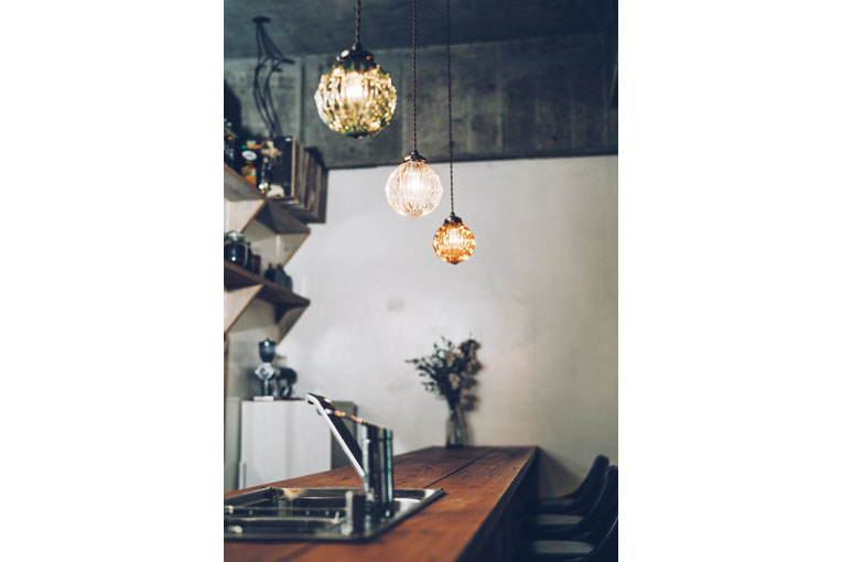 表面の凹凸で表したデザインが点灯した時だけでなく消灯時さえもオブジェのように空間を素敵に彩ってくれます。