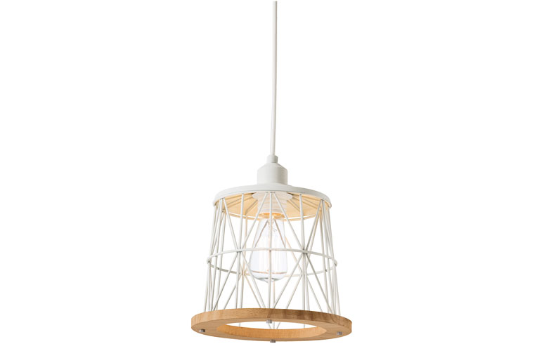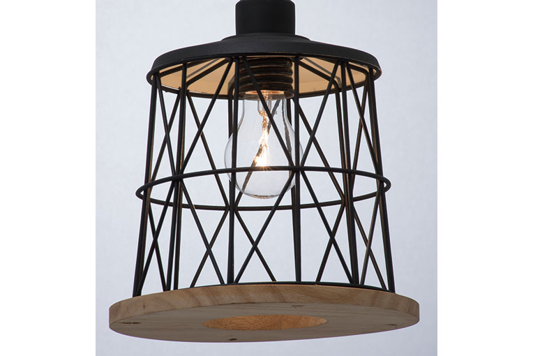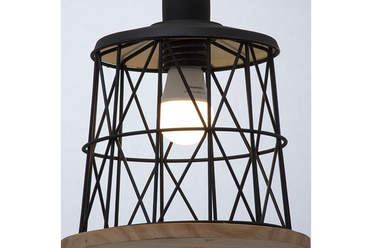 縦、横、斜めに走るスチールのラインがモダンな鳥かごのようなデザインのペンダント照明。