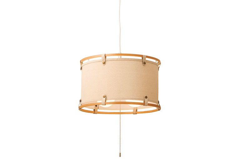 ファブリックセードを挟むように木のリングが上下に2つ。