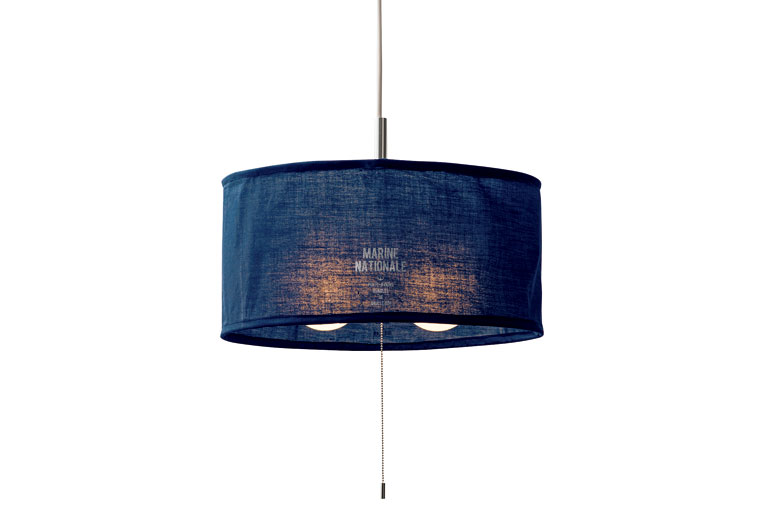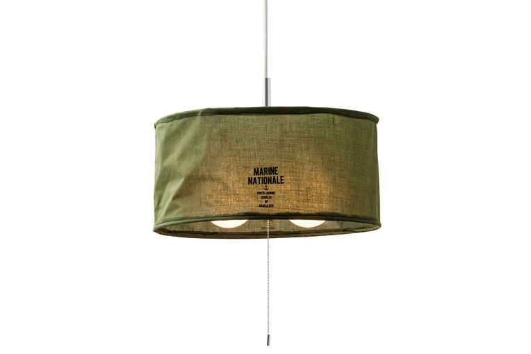 ファブリックを使ったシンプルなランプセードをメンズテイストのデザインでまとめたペンダント照明です。