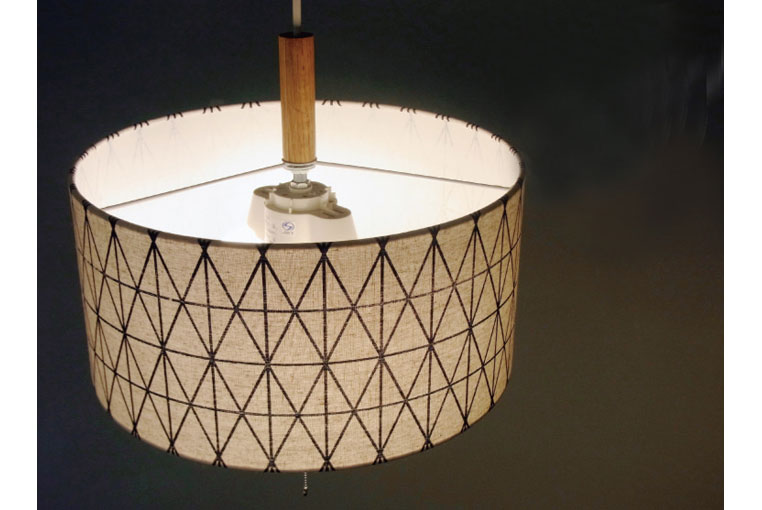 布を使った筒状のセードがシンプルな模様をまとって、やさしい印象の照明になりました。