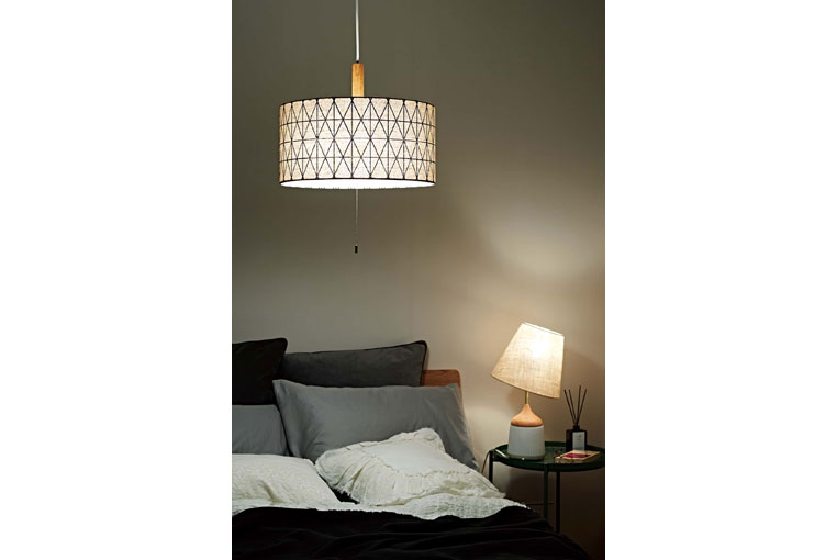 北欧テキスタイルがアットホームなムードを作る、穏やかな表情のペンダントライトです。
