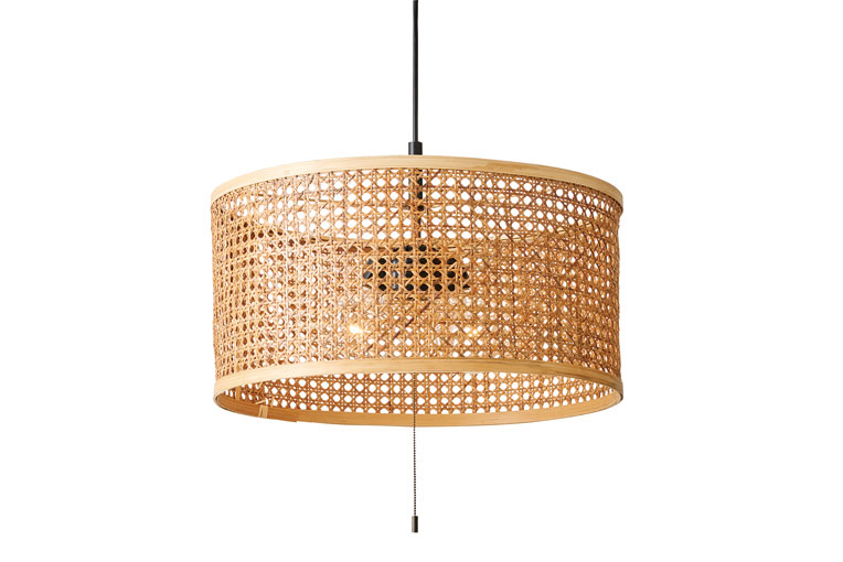 工芸品にあるようなバスケットを思わせるラタンの素材感が重くならず、奥行きをプラスしてくれます。
