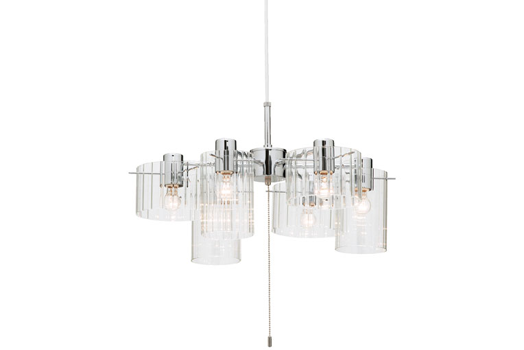 2種類のサイズで動きを出したモダンな印象のシャンデリアタイプのペンダントランプ。