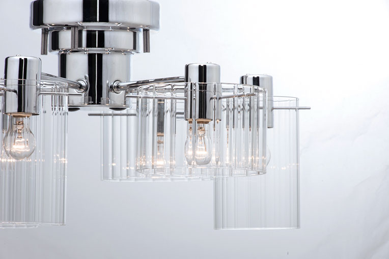 ランプセードは筒状のガラスを大小、長短とサイズを変えダイナミックな透明感と幻想的な雰囲気が味わえます。