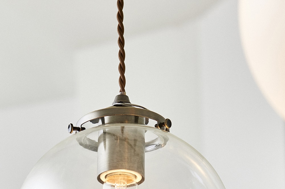 アンティークゴールドのソケットとブラウンのよりコードを採用することで、ノスタルジックな仕上がりになりました。