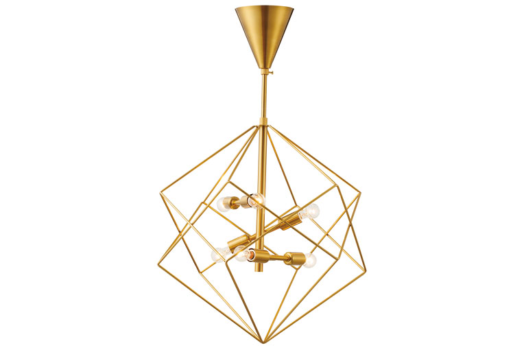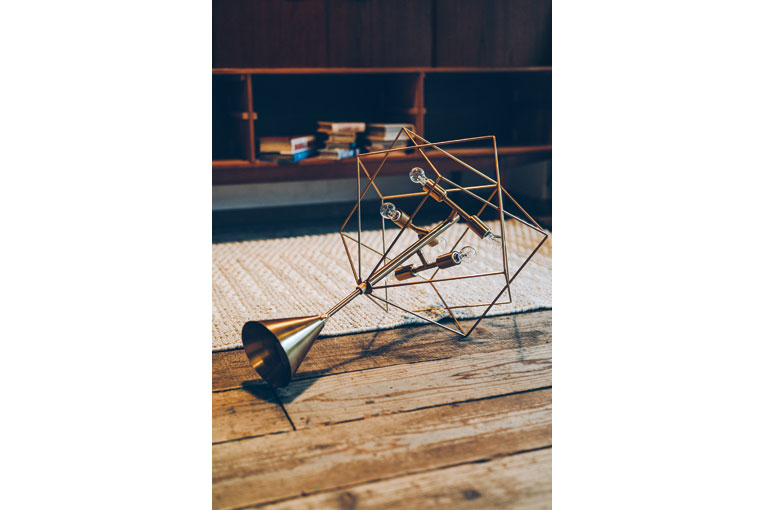 細いラインでできたランプセードは6面体を重ねて、幾何学的なルックスに。