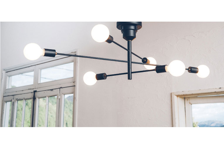 長さの異なる3本のアームの両先に合計で6つのソケットをインストールしたシンプル&クールなシーリングライト。
