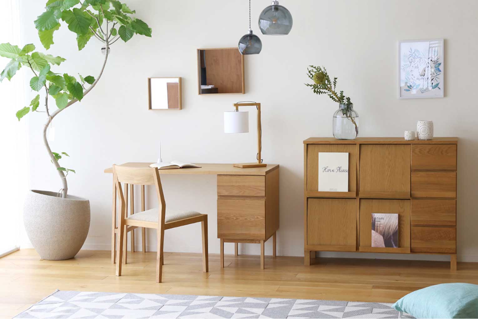 シンプルなインテリアに、自分好みのアイテムをひとさじプラスすれば心地よく楽しい時間が生まれます。