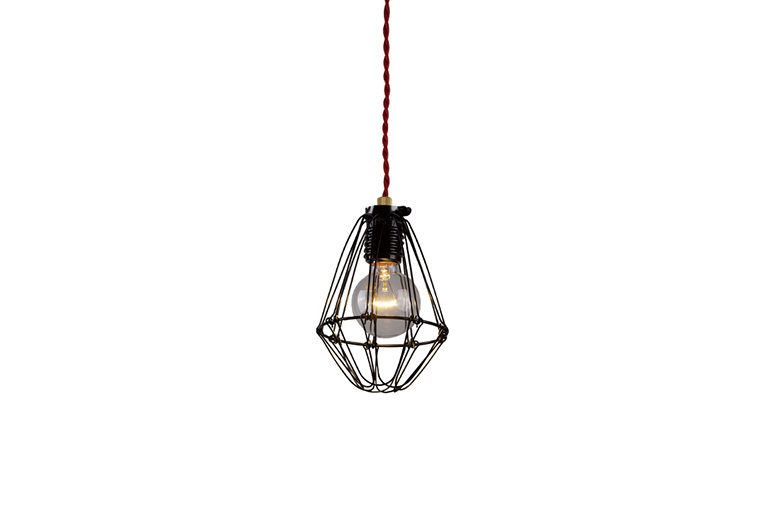 工事現場や倉庫で使用していそうな、ボール球をワイヤーゲージで囲んだペンダント。
