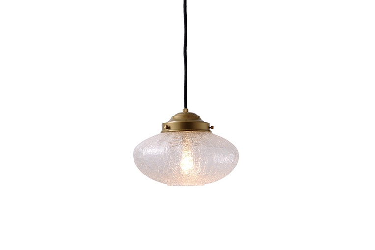 ヒビ加工が施されたガラスシェードとアンティークゴールドの金具がヴィンテージな雰囲気に。