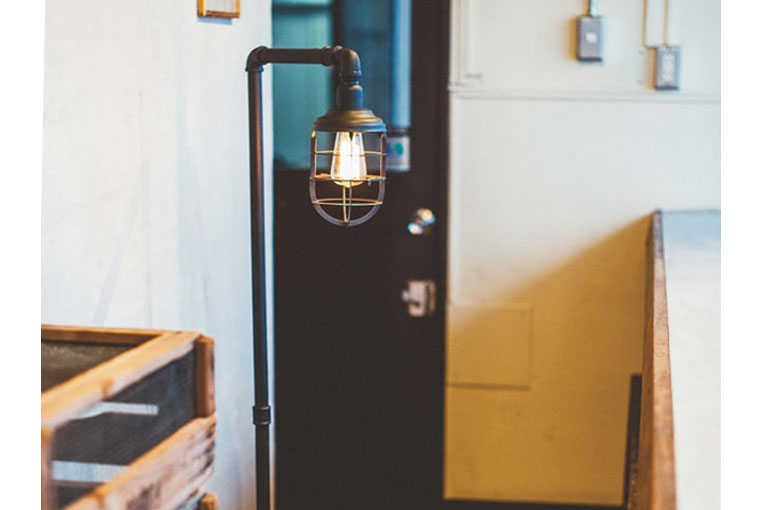 シンプルさにこだわった、ミニマルなデザインの中にどこかレトロな印象が感じられるファクトリーテイストのフロアスタンド。