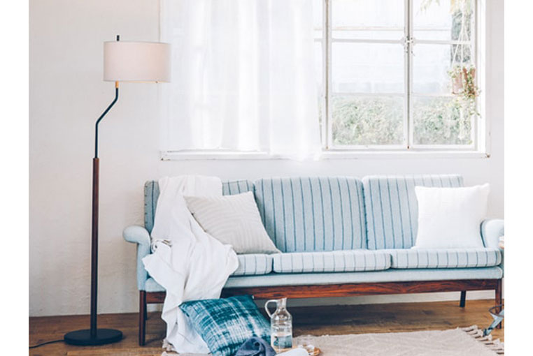 太さや角度、素材など緩急をつけたポールが印象的なフロアスタンド。