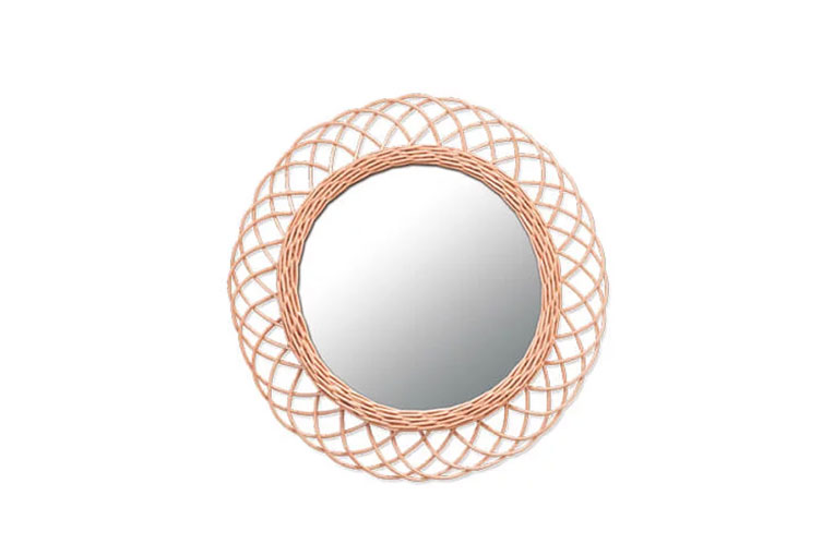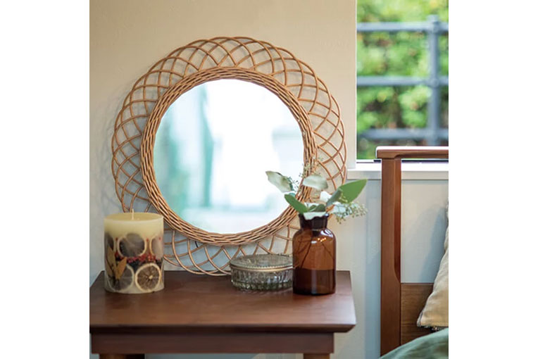 柳を手作業で丁寧に編み込んだこんなミラーなら、のぞき込むたびに笑顔になりそう。ナチュラルなお部屋にぴったりです。
