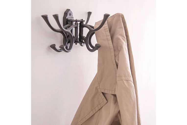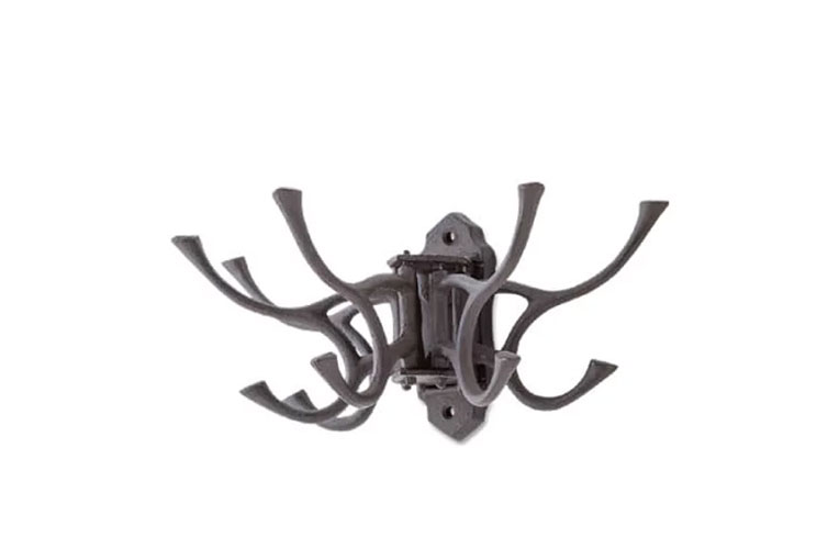 キャストアイアン(鋳鉄)製のフック。渋めの色味がアンティークの雰囲気を感じさせます。フック部分が左右に動くので使いやすさも抜群です。
