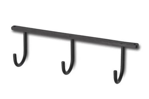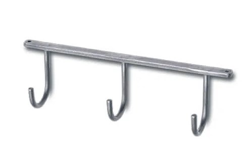 棚板の下側などに付けるタイプのフックです。3連になっているので、複数掛けることができます。