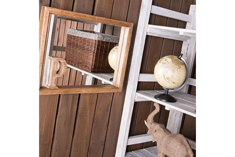 マンゴーウッドの縁取りがアクセントの壁掛けミラー。重厚な雰囲気がヴィンテージ感を醸し出します。縦でも横でも使用できる使い勝手の良さも◎