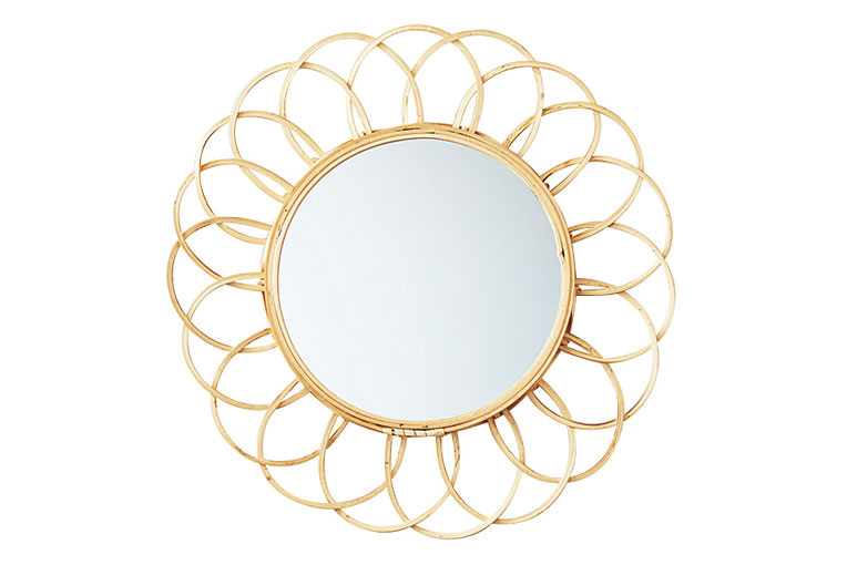 コーディネイトを選ばないデザインミラーで天然素材のやさしい雰囲気を取り入れて。