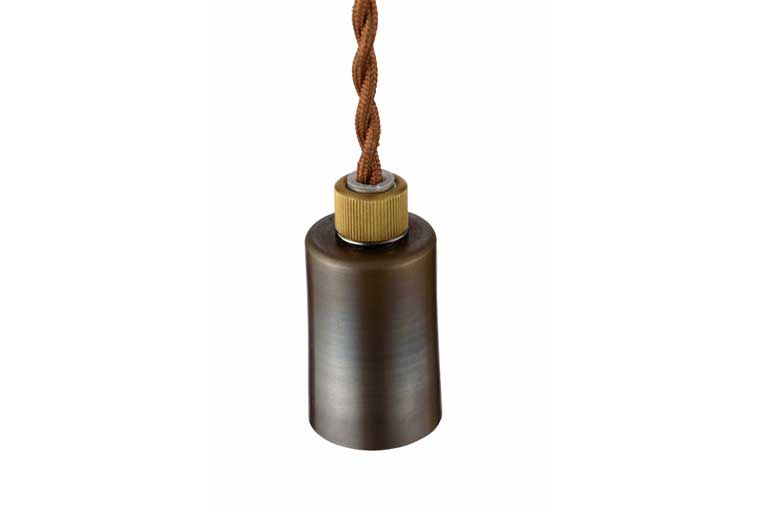 バーナーであぶった独特のステンレスの輝きが美しいソケット。ヴィンテージ感のある輝きで雰囲気のあるインテリアを演出。ブラウンのコードと真鍮・ステンレスが独特の存在感を放ちます。