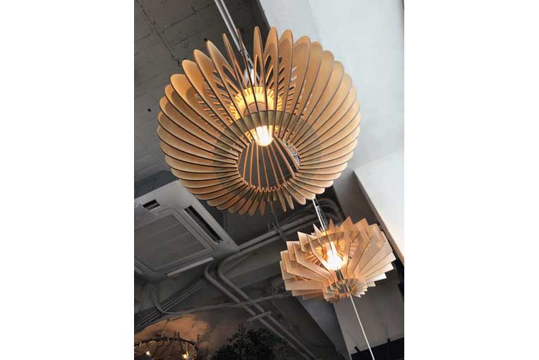 天然木を使ったアッセンブリーペンダントライト。一つ一つのパーツを自分で組み立てる事で作る楽しみを知ることができます。