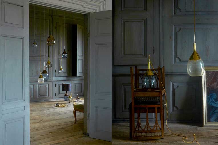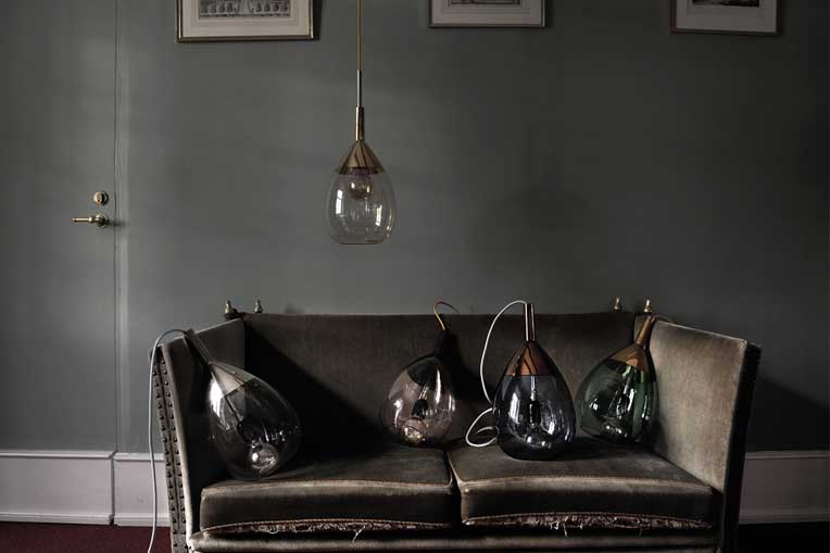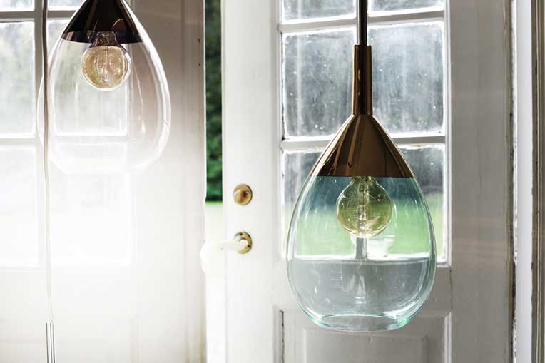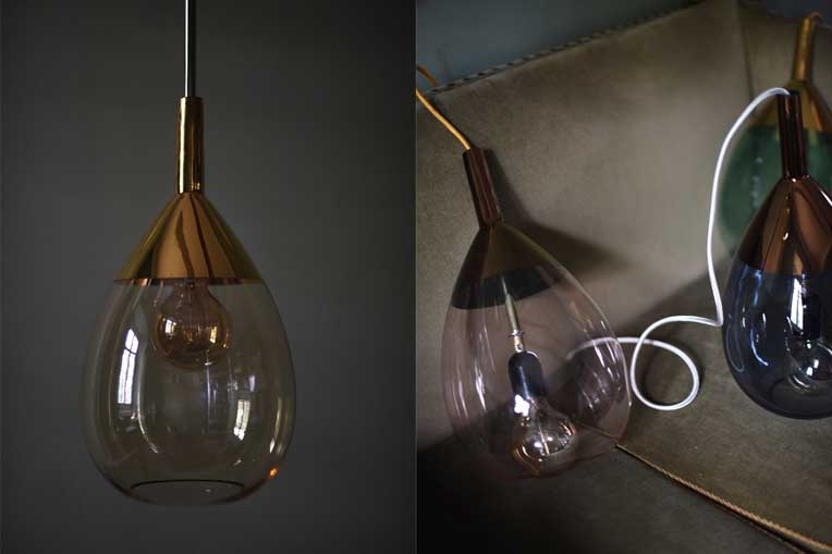 金属と口吹きガラスを使ったシンプルなデザイン。