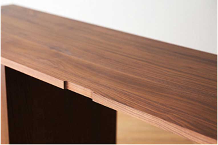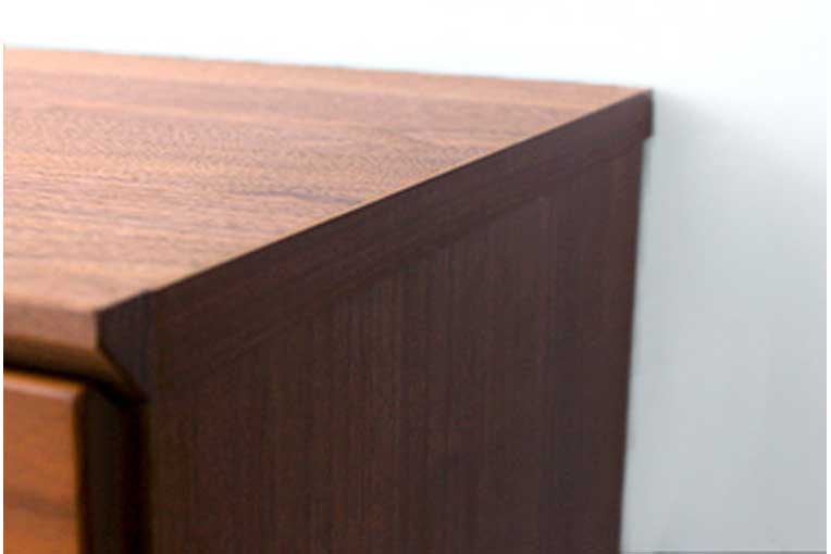 引き出しの前板に面取り加工を施すことで、天板を載せた際の収まりがよく、機能面はもちろん見た目もスマートで美しい仕上がりです。