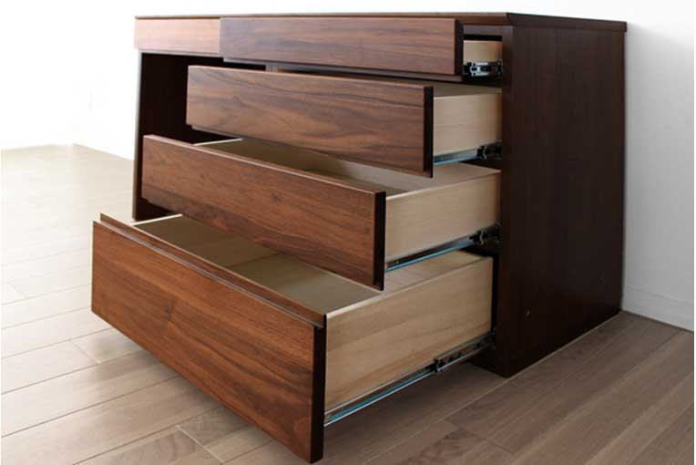 引き出しには彫り込み式の取っ手とフルオープンスライドレールを装備しています。