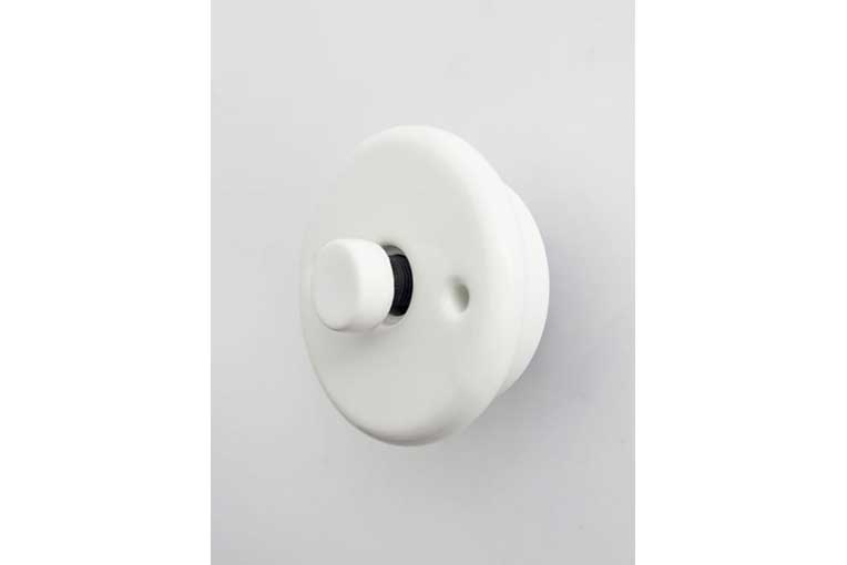 オールセラミックのまるっこいプッシュ式スイッチです。ツヤがありなめらかな磁器は、清潔感があるので洗面所など水周りにもぴったり。主張しすぎず、でもしっかりとした存在感のある素材はナチュラル・シンプル・インダストリアル等さまざまなインテリアに似合います。デザインはアンティークのスイッチにインスパイアされていますが、日本製なので安定してお使いいただけます。ボディだけではなくスイッチ部分も磁器製で、カチリ、という確かな押し心地にアナログの温もりを感じます。クリーンなホワイトは住宅だけではなく、サロンなどの店舗空間にもおすすめです。