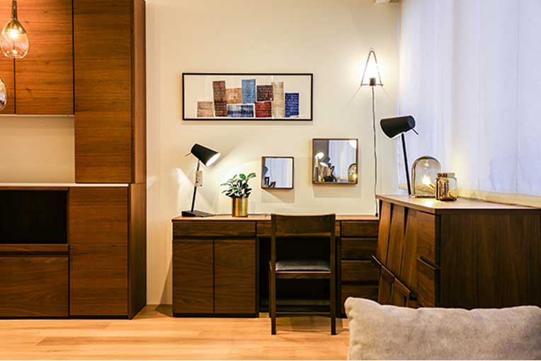 金属と口吹きガラスを使ったシンプルなデザインとモダンなディテールに絶妙な色の深みを融合させています。