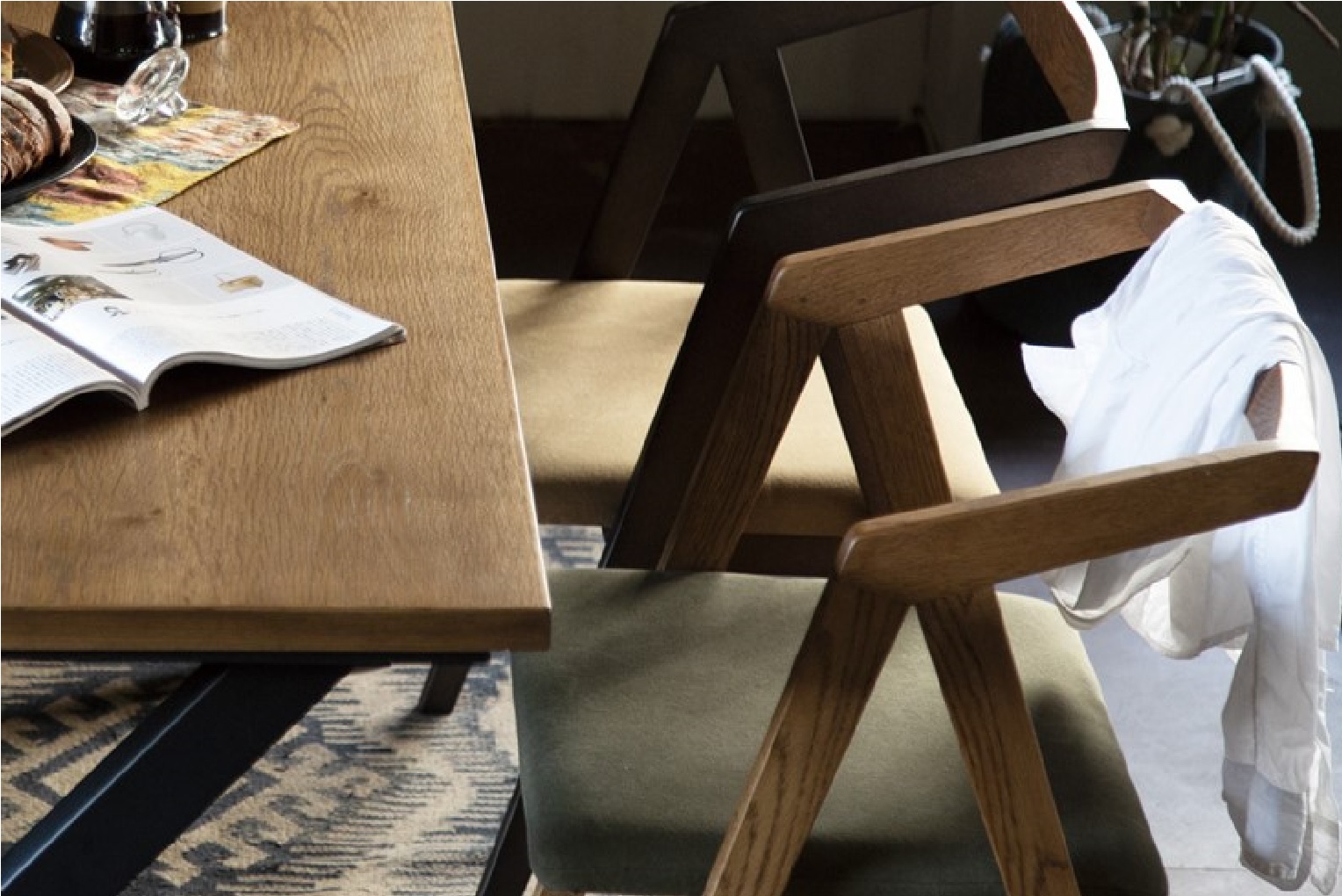 オークというのは家具に使用される木材の中では重い部類に入りますが、パーツを極力減らしたシンプルな構造とシャープなフレームにすることで軽量化を実現しました。