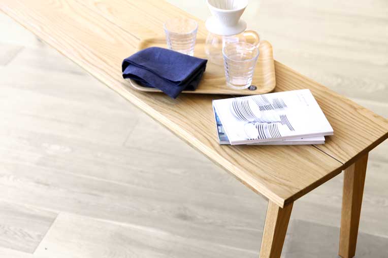 座る人数やダイニングテーブルの幅に合わせて、サイズオーダーができるプレーンベンチです。