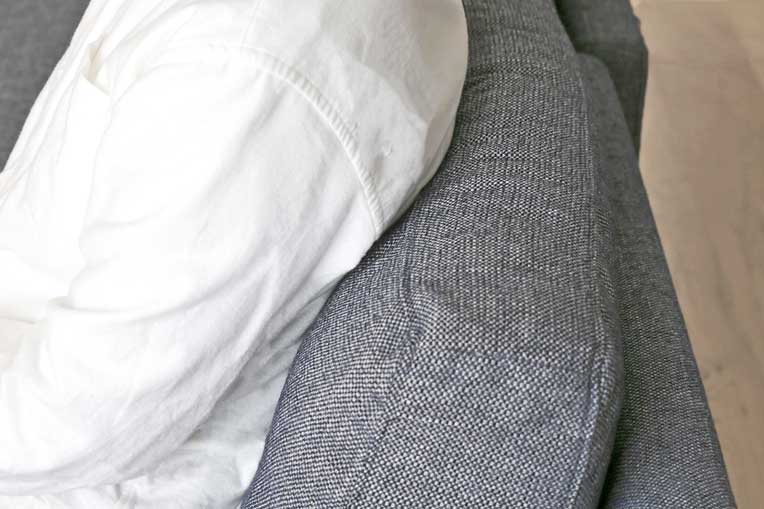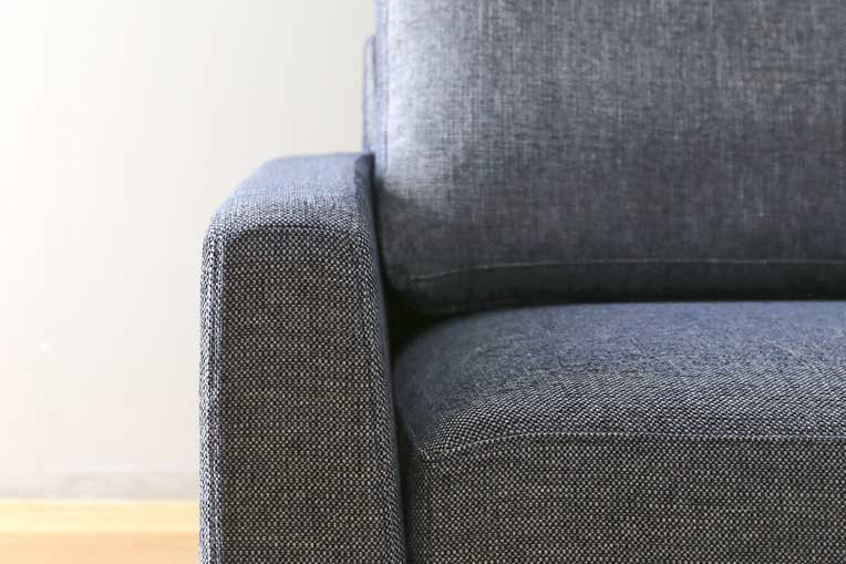 カバーのファブリックは、耐久性がありシワになりにくいポリエステルと、型崩れしにくく摩擦に強いアクリルを使用しています。カラーはライトグレー、ネイビー、チャコールグレーのベーシックでさまざまな家具にマッチする3色からお選びいただけます。
