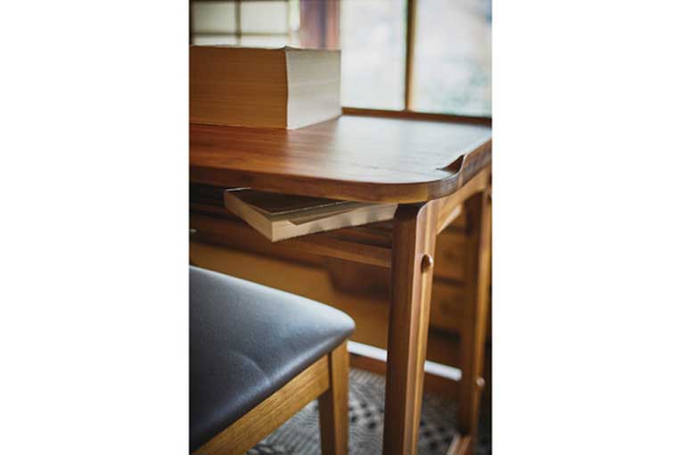 独自の塗装技術により、赤褐色の錆びまでを表現した逆V字脚が特徴の「Booker.T(ブッカーT)」シリーズ。 鉄製に見える脚は実は木でできています。 座にはオークの無垢材を使用。色はライトブラウンで仕上げ、力強いオークの木目が際立つ仕上がりとなりました。