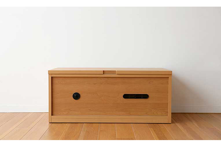 本体の右側にはコンセントなどを収納できる便利なスペースを設けました。ごちゃつくコードを一ヶ所にまとめ雑然としたテレビ周りの印象をすっきりと解消できます。