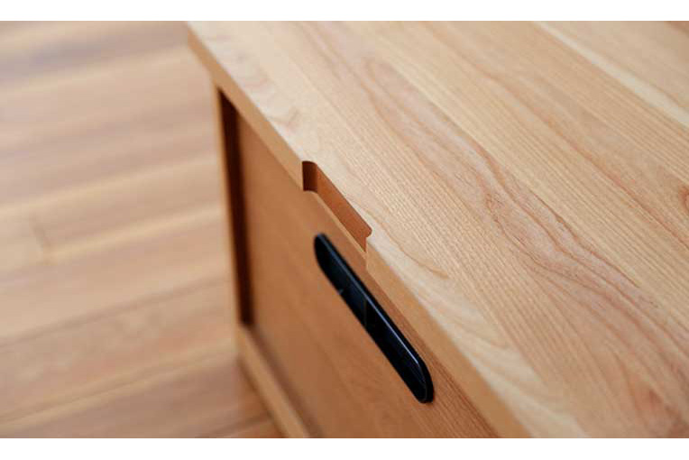 | 素材 | (前板)アルダー/ウォールナット (前板)天然木無垢材 (天板)天然木突板 (側板)化粧合板 (ガラス)強化ガラス |
