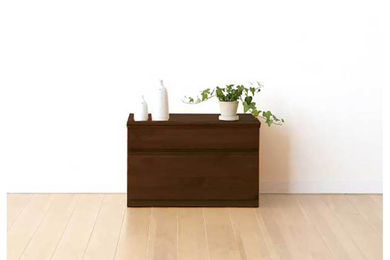 | 素材 | (前板)アルダー/ウォールナット (前板)天然木無垢材 (天板)天然木突板 (側板)化粧合板 (ガラス)強化ガラス |