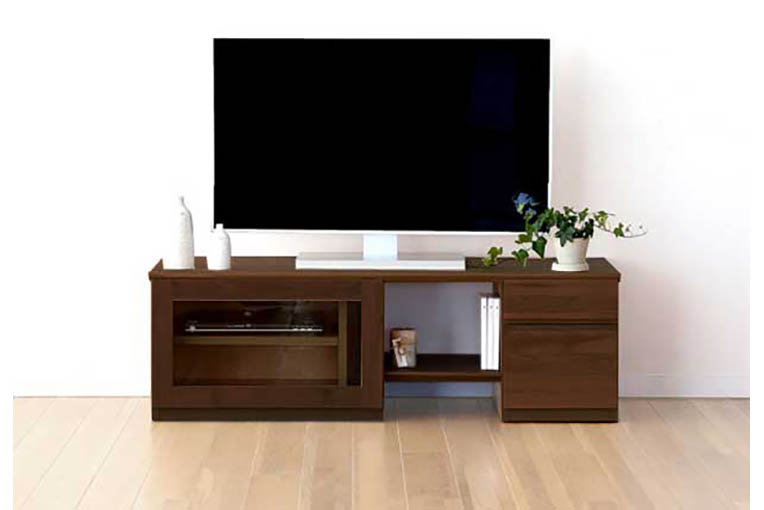 収納力がありごちゃつきがちなテレビ周りの配線もきれいにまとめられる、すっきりとした暮らしに欠かせない家具です。