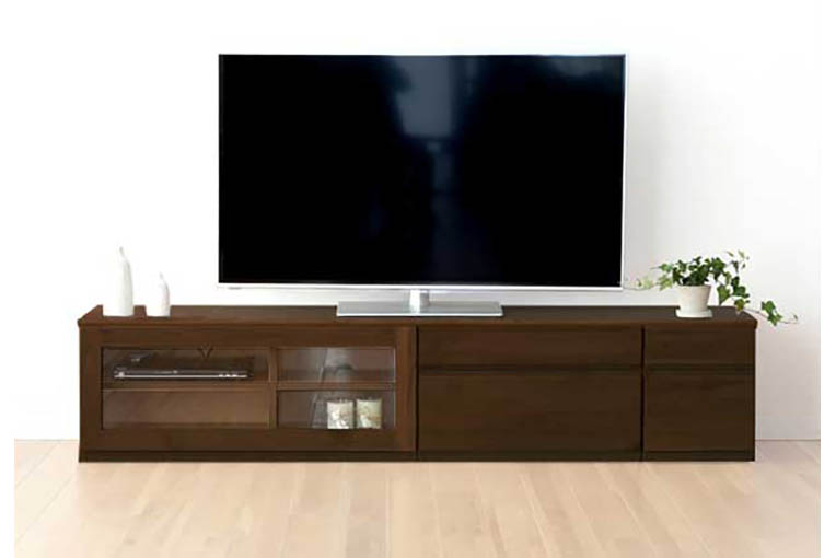 収納力がありごちゃつきがちなテレビ周りの配線もきれいにまとめられる、すっきりとした暮らしに欠かせない家具です。