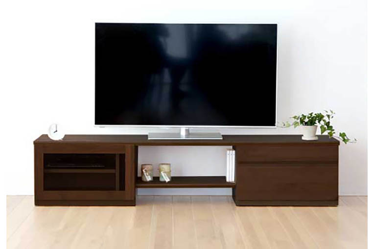 収納力がありごちゃつきがちなテレビ周りの配線もきれいにまとめられる、すっきりとした暮らしに欠かせない家具です。