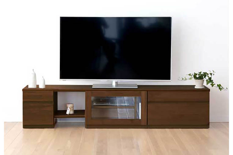 収納力がありごちゃつきがちなテレビ周りの配線もきれいにまとめられる、すっきりとした暮らしに欠かせない家具です。