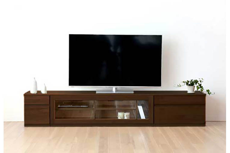 収納力がありごちゃつきがちなテレビ周りの配線もきれいにまとめられる、すっきりとした暮らしに欠かせない家具です。