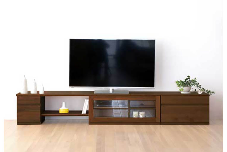 収納力がありごちゃつきがちなテレビ周りの配線もきれいにまとめられる、すっきりとした暮らしに欠かせない家具です。