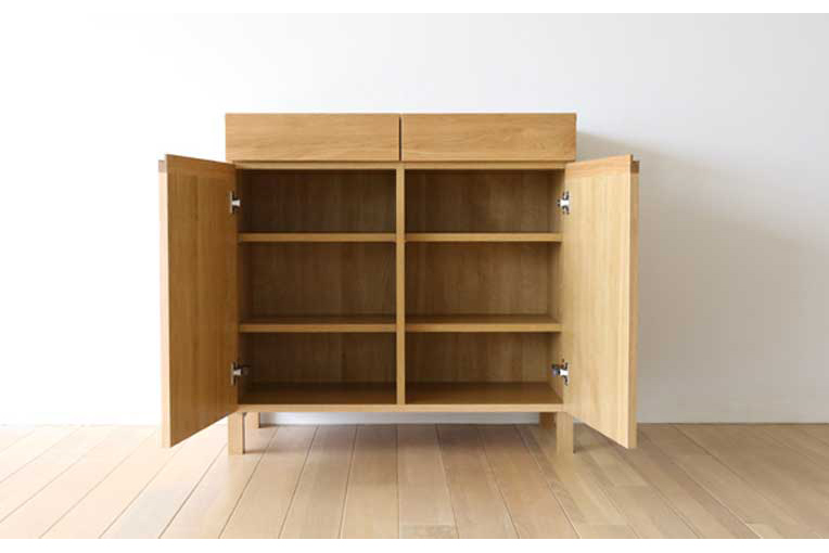 | 素材 | (天板・側板・扉前面)ホワイトオーク/ウォールナット突板 (引き出し前板)ホワイトオーク/ウォールナット無垢材 |