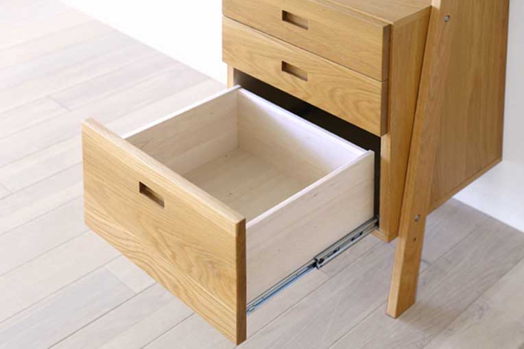 引出全段にフルオープンスライドレールを採用。軽い力でスムーズな開閉が可能です。フルオープンスライドレールを採用しており、CDやDVDなどタイトルを上にした状態で収納が可能。