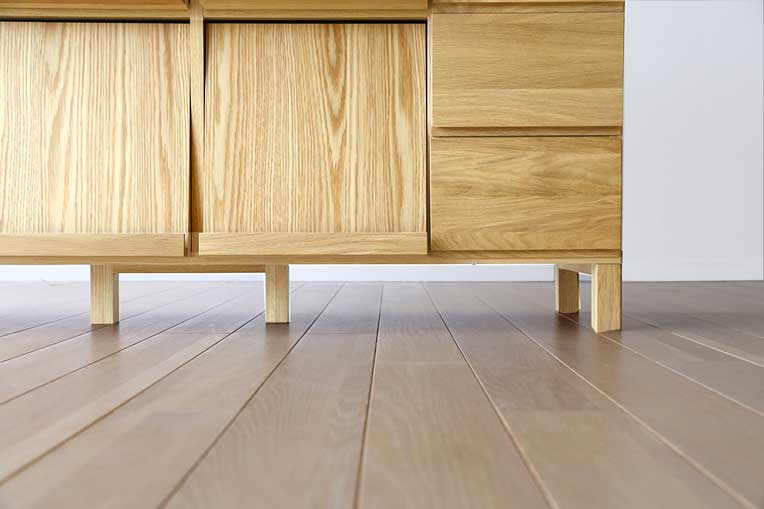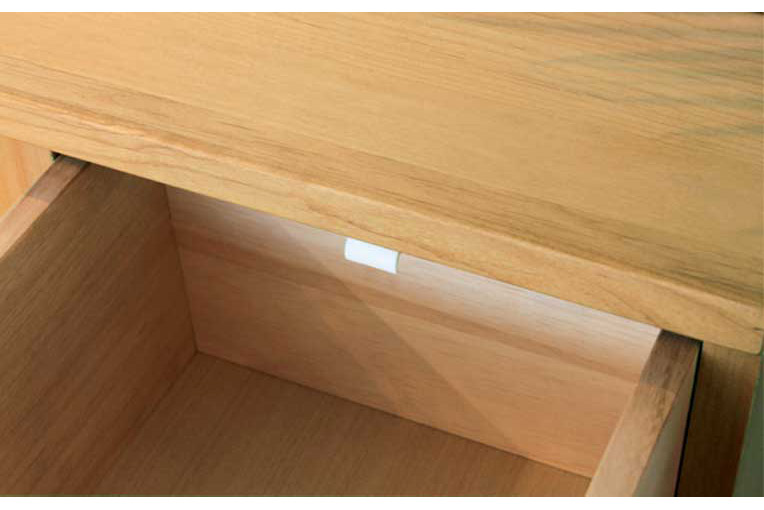 前板には無垢材、天板・側板には突板を使用し天然木の素材感溢れる仕上がりとなっています。